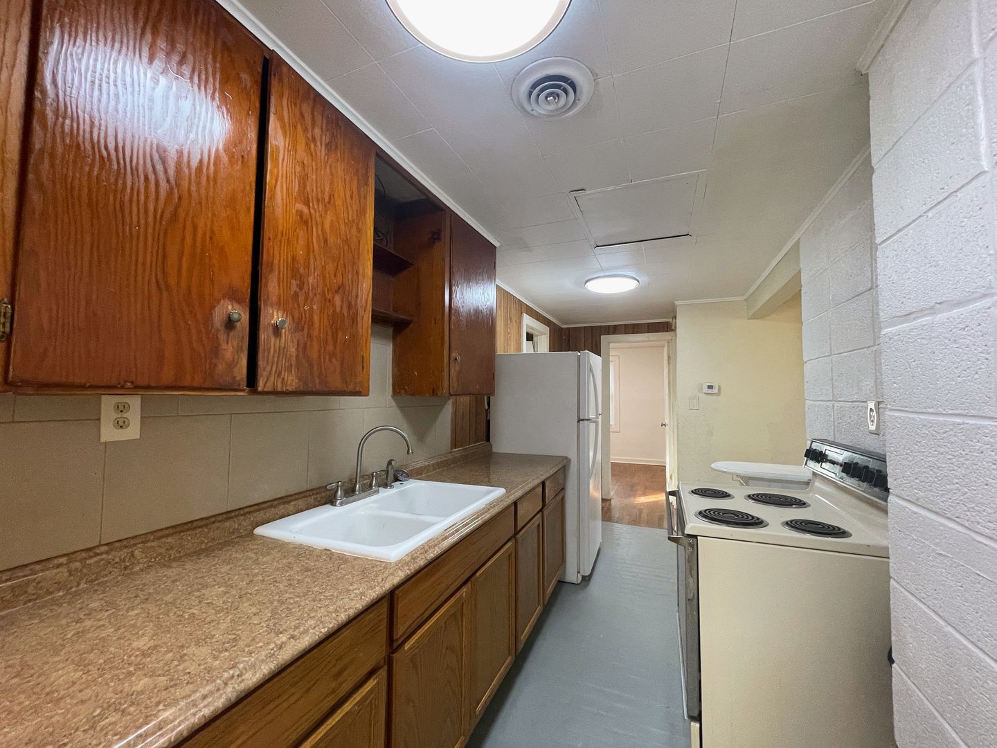 3 Bedroom 1 bathroom home on a corner lot. Hardwood floors and LVP throughout. Fridge and stove provided. Washer and dryer hookups. Fenced back yard. Tenant pays utilities. Central heat and air. No Pets! Fill out a free application on our website www.hutch.house and we will consider a showing! Call Sadie or Allison at 620-960-1120 with questions. -GRPM