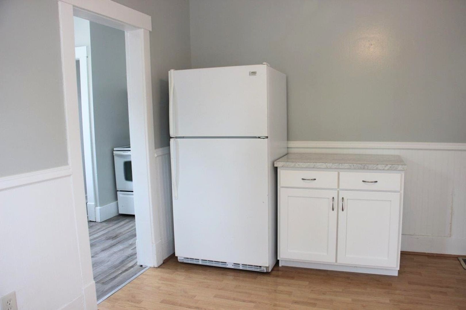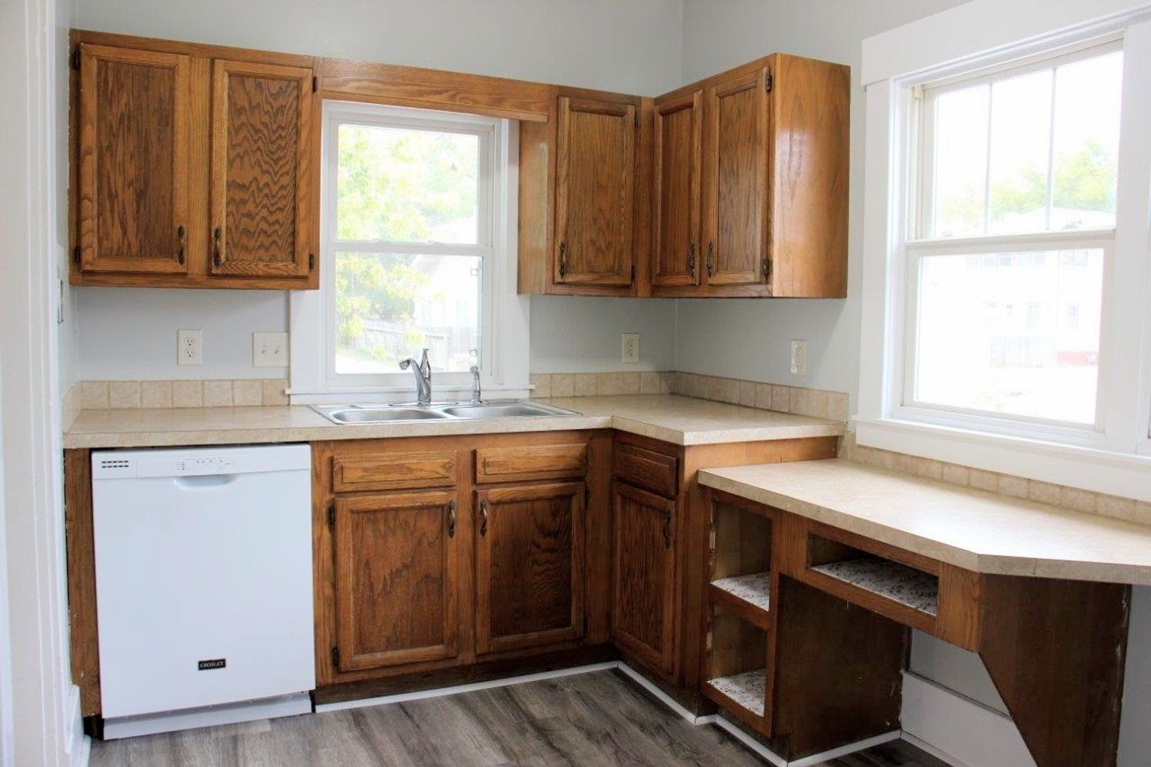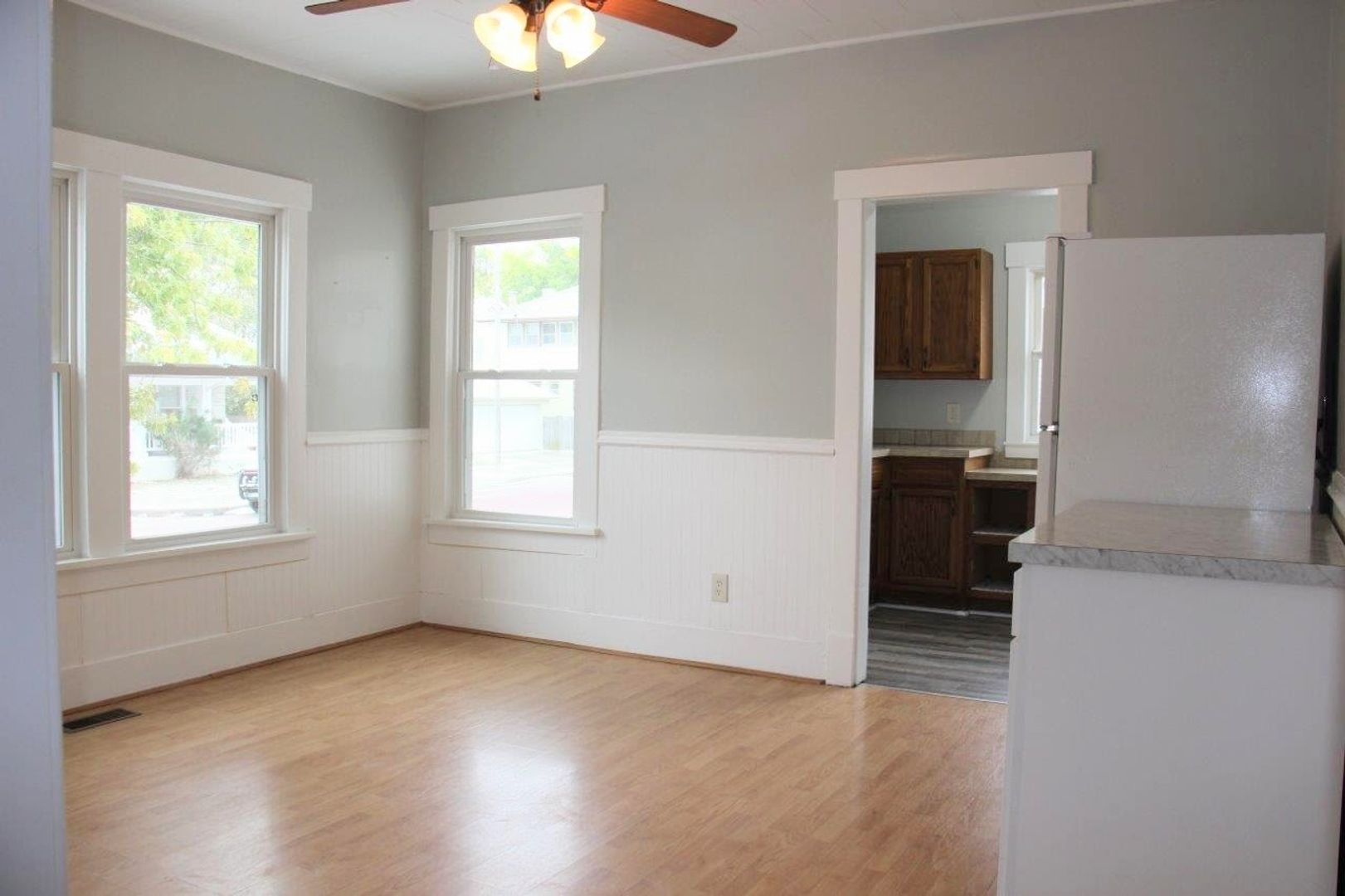 Spacious two bedroom one bath house. Vinyl windows throughout and updated flooring. Large living room and separate dining room. Kitchen includes a dishwasher. Partial basement for extra storage. Washer/dryer can be hooked up in the sunroom or downstairs in the basement. Alley access with parking space in the back. Stove, fridge, washer, and dryer provided. Central heat and air. Tenant is responsible for all utilities and lawncare. Complete a free application on our website www.hutch.house and we will consider a showing! Call Sadie or Allison with questions at 620-960-1120. -GRPM