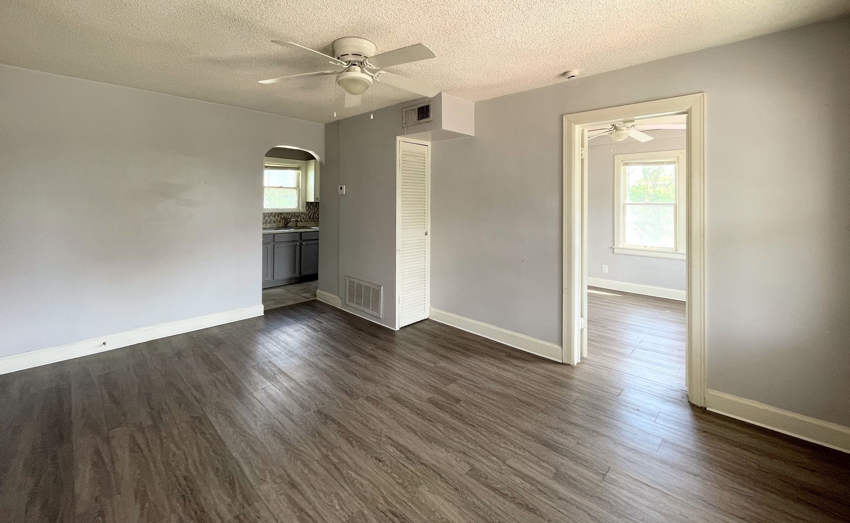 This is a cozy one bedroom, one bathroom apartment located on the second floor. It has a spacious living room with multiple closets for extra storage space, a separate dining nook for added convenience, and access to a shared balcony. Additional features include a galley style kitchen, tile flooring, and off street parking. The stove and fridge are provided. Tenant is responsible for electricity; and gas, water, trash, and lawncare are provided for a $50 monthly fee. Complete a free application through our website, www.hutch.house, and we will consider a showing! Feel free to reach out to Sadie or Allison at 620-960-1120 with questions.