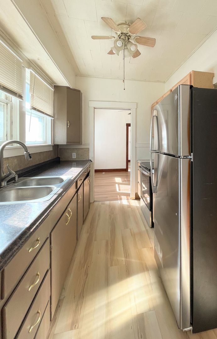 This is an updated two bedroom, one bathroom home with new paint and flooring throughout. It features plenty of storage space, a separate dining room, and an extra workspace for added convenience. Outside, there is a large, partially fenced backyard, a detached garage, and front and back porches perfect for additional storage and relaxing outside. Tenant pays all utilities. No pets! Fill out a free application through www.hutch.house, and we will consider a showing. Reach out to Sadie or Allison with questions at 620-960-1120.
